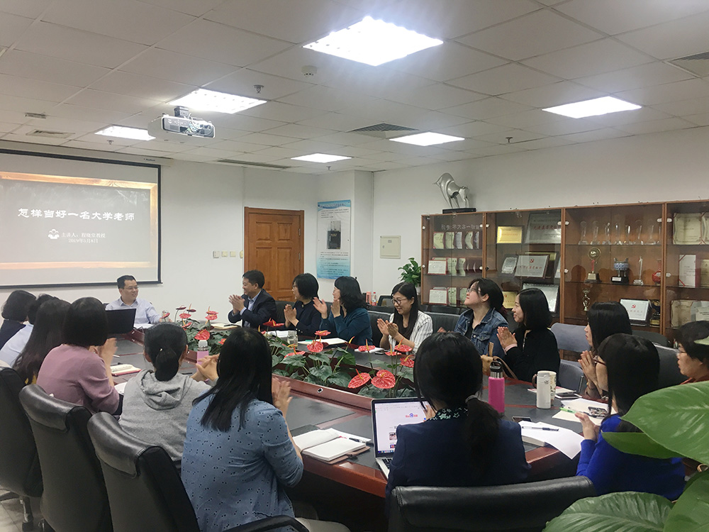 会议首先邀请程晓堂老师做了题为“怎样当好一名大学老师”的专题讲座,程老师从政治立场、专业能力、爱岗敬业、教书育人等四个方面毫无保留地与青年教师们分享了他多年的教学和科研经验,着重强调师德师风建设的重要性,也为青年教师的职业发展指明方向。他指出,青年教师要有坚定的政治立场和良好道德品质;要注重发展自己的业务能力、科研能力、学术交流能力和发表能力;要有严谨的治学态度和积极进取的心态;对待学生既要严格要求又要认真负责。党委书记刘娟向学院青年教师传达了学院师德师风建设相关要求,强调了加强师德师风建设的目的和意义,要求广大教师要按照“四有好老师”的标准严格要求自己。院长苗兴伟结合自身经历,勉励青年教师不断提升自身的教学能力与水平,成长为全面发展的优秀教师。