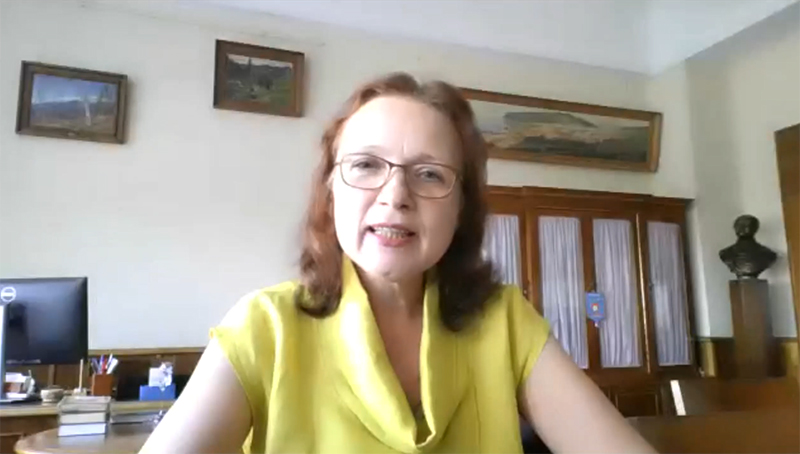 科尔塔娃副校长在发言中肯定了“俄语教师联合发展中心”成立以来举办的各项活动,并对中心主任刘娟教授所做的大量工作表示了敬意。她强调,今年是中国共产党100周年华诞,本次活动的巨大成功无疑是对建党百年的献礼。 2022年,北京师范大学将迎来120周年校庆,为庆祝这一盛大节日,科尔塔娃校长对两校可能开展的一系列教学科研活动,以及“俄语教师联合发展中心”未来的工作方向做出了展望。