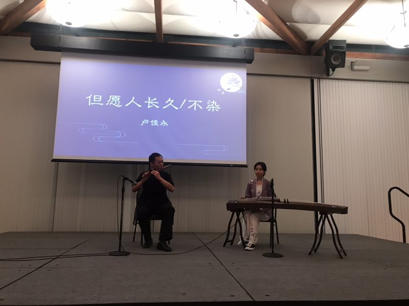 随后侯捷老师又与中国留学生卢佳永共同带来了笛子与古筝的合奏曲“不染”,欢快的笛声与悠扬婉转的古筝完美融合在一起,展现了中国民乐的纯净、朴素、动静平衡的独特吸引力。