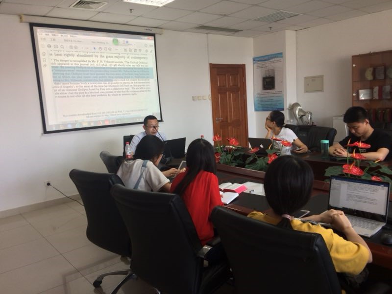5月24日、31日和6月1日,外国文学研究所邀请北京大学外国语学院英语系高峰枫教授作了关于圣经文本研究的系列讲座,由自慰直播-美女自慰直播 蒋虹教授主持,章燕教授、于洋博士和外文学院部分硕士研究生参加了学习和讨论。