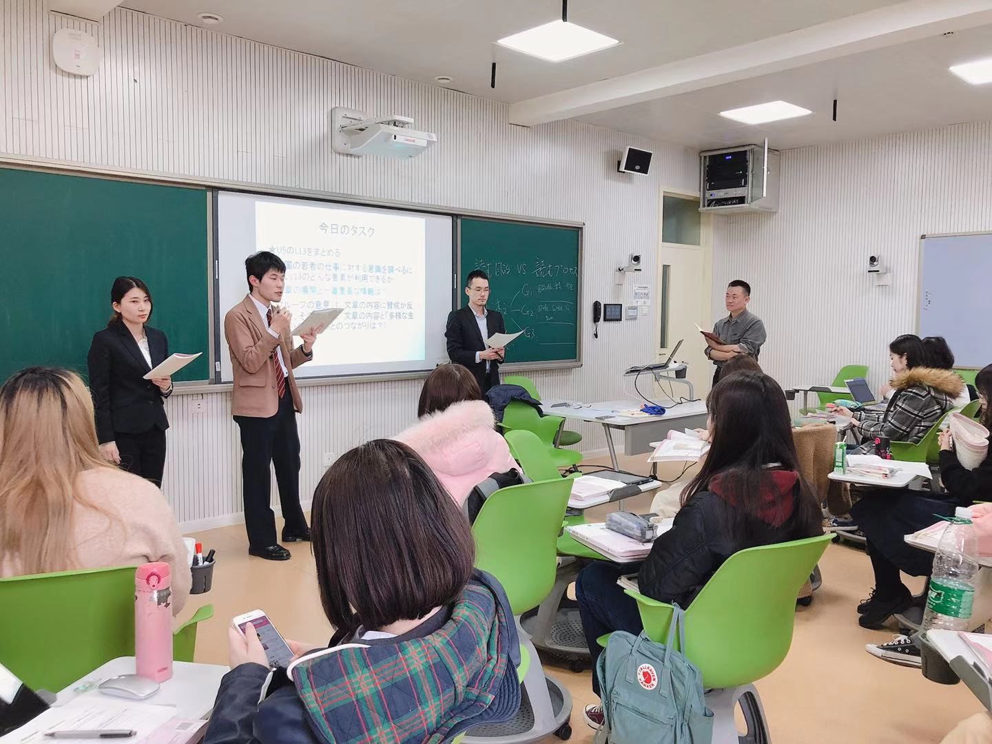 2019年3月11日—3月22日,日本琦玉大学一行(带队教师1人、研究生及本科生4人)来自慰直播 日文系进行了为期两周的教育实习。第一周全体实习生观摩日文系教师授课,第二周在日文系教师的悉心指导下,他们认真备课,在初级日语、中级日语、日语口语、日语听力、日语语法、日本历史等基础课上出色地完成了课堂实践。此次活动不仅为日方实习生提供了一线的教学场所,也为自慰直播 日文系师生的教与学带来了良多的启迪。另外,通过课堂内外的交流与接触,中日两国学生加深了相互理解,结下了深厚的友谊。