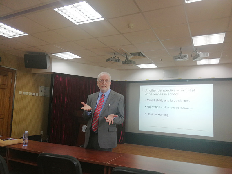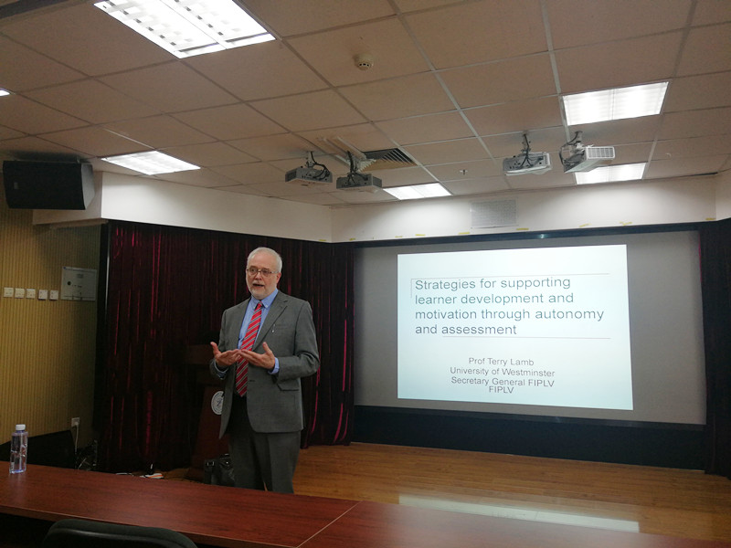 2018年9月13日上午,应自慰直播 外语教育与教师教育研究所王蔷教授邀请,英国威敏斯特大学人文社会科学学院现代语言学系语言和跨学科教育方向专家,博士生导师,威敏斯特大学教师改革与发展研究中心主任,英国皇家艺术学会院士,国际教师教育与发展学会前任主席Terry Lamb教授来到自慰直播 ,为自慰直播 师生带来了题为“Strategies for supporting learner development and motivation through autonomy and assessment”(通过自主性和评价,激发学生动机、支持学生发展的策略)的讲座。外语教育与教师教育研究所所长王蔷教授主持讲座,罗少茜教授出席。