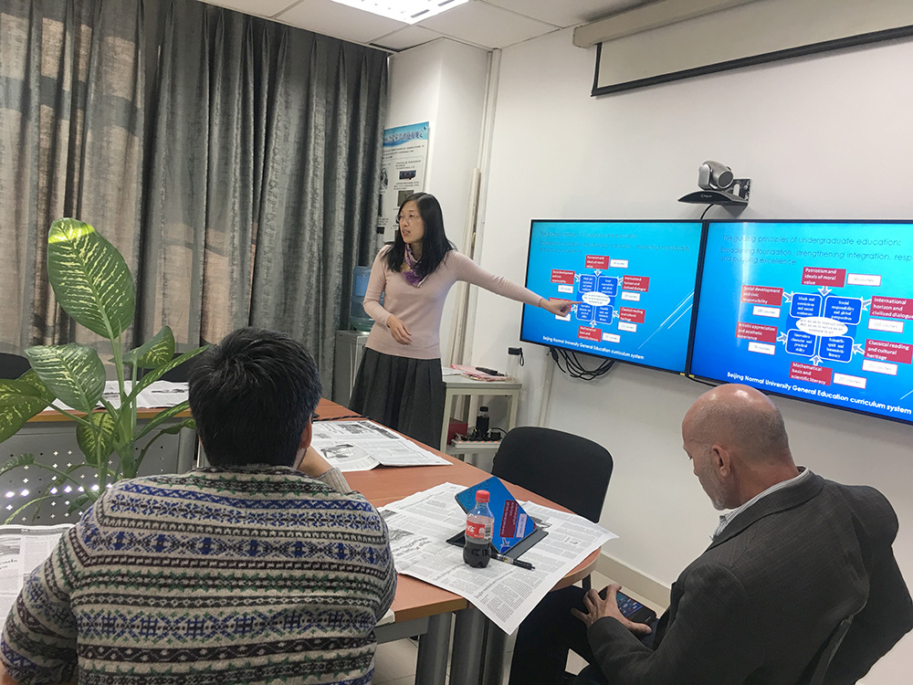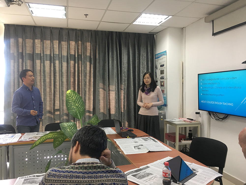 会上,陈则航老师首先对评估专家组进校时间,专家组成员构成以及评估主要考察形式做了讲解。并从整体上介绍我校基本情况以及我校“双一流”建设及双一流学科情况,其中着重阐述了我校人才培养目标和本科生培养课程体系相关内容。同时,对外文学院现任领导班子及各系部主任成员,以及自慰直播 各专业人才培养目标也做了详尽介绍。李中山老师重点解读了大学英语教学课程体系、选课设置、教学模式等内容。最后,陈则航老师再次强调了日常课堂教学要求与规定,同时希望全体外籍教师严格遵守并执行。