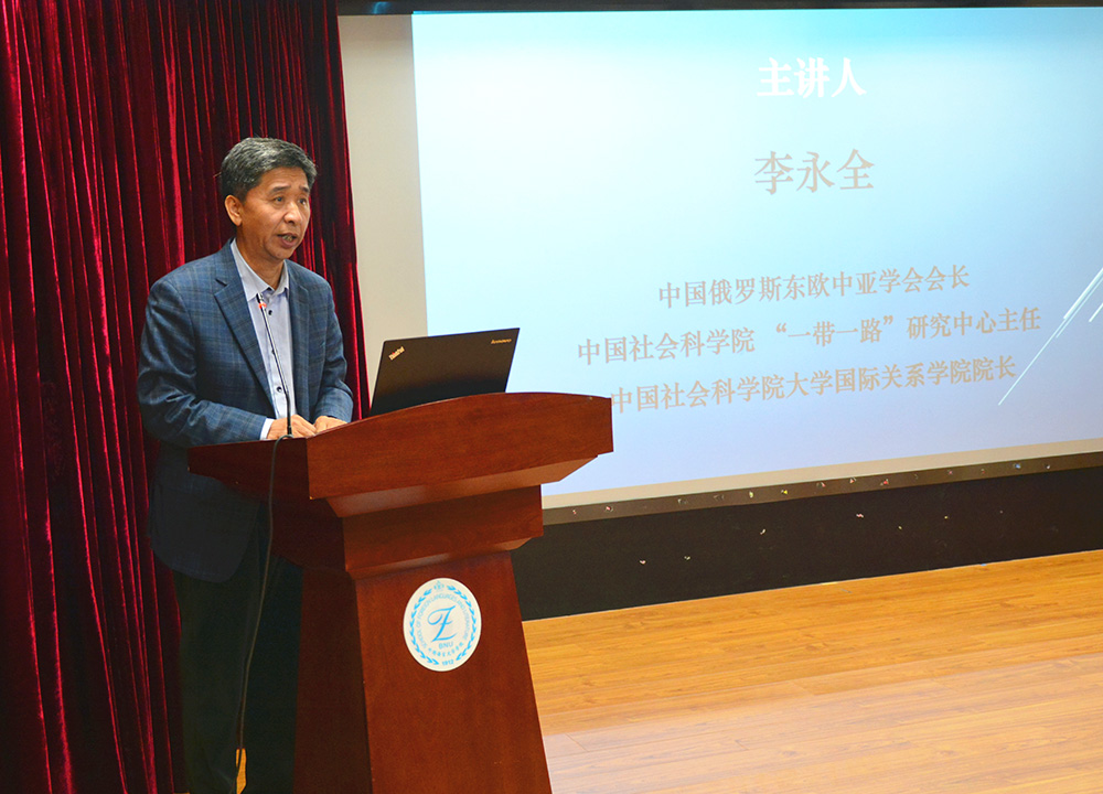 “京师亚欧名家讲坛”是由北师大俄罗斯中心与中国俄罗斯东欧中亚学会共同打造的高层次学术论坛,旨在推进高水平学术研究、培养复合型人才。中国俄罗斯东欧中亚学会会长、中国社会科学院“一带一路”研究中心主任、中国社会科学院大学国际关系学院院长李永全教授成为本讲坛的开讲嘉宾。教育部国别与区域研究基地北京师范大学俄罗斯研究中心主任、北京师范大学外文学院党委书记刘娟教授担任讲座主持,中国俄罗斯东欧中亚学会秘书长王晓泉研究员及俄罗斯研究中心的专家们出席了此次讲座。