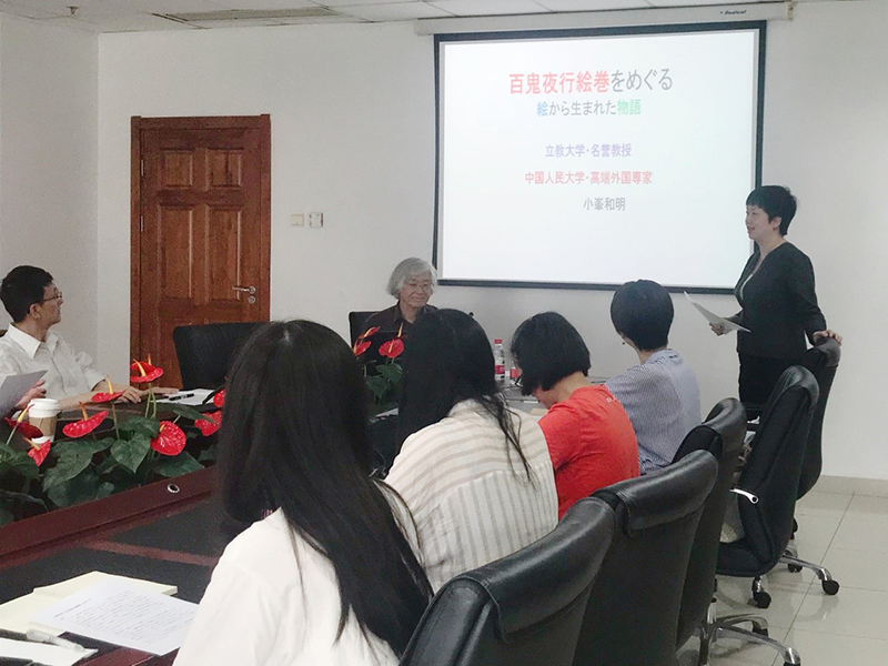 小峯教授主要以日本前近代具有代表性的妖怪绘卷——百鬼夜行绘卷为中心,在文学与绘画的接点上分析绘卷中出现的各种妖怪形象,从多个角度进行读解,追根溯源,对于为何人类需要妖怪、人类还会创造出怎样的妖怪等问题阐述了独到的见解。