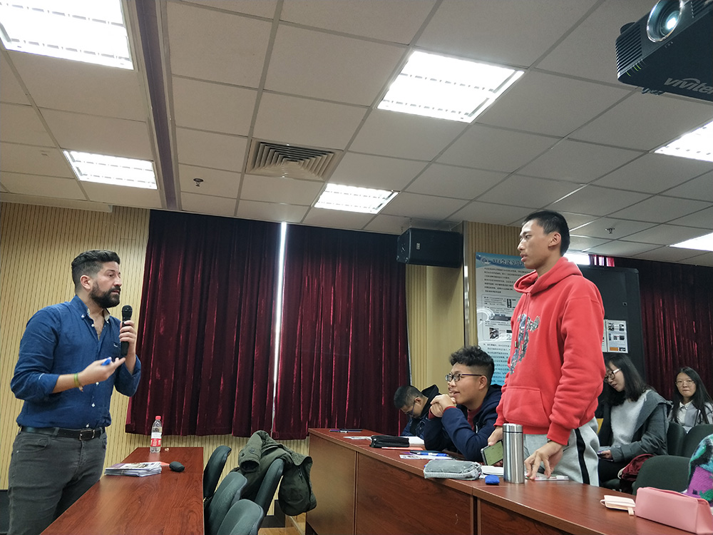 本次宣讲,Julio博士还特别为在场学生讲授了20分钟语言学入门的样课。以小见大,深入浅出,以启发式教学方法,让大一和大二的学生感受曼大语言学课堂教学气氛。
