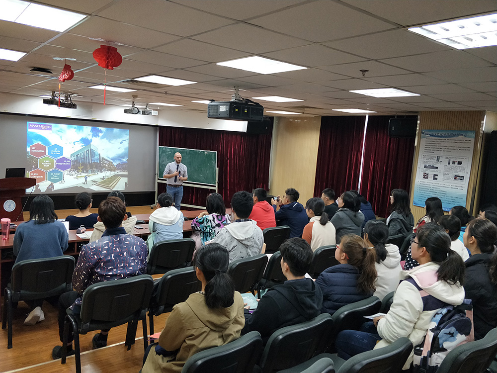 11月1日,来自英国曼彻斯特大学的两位老师,Julio博士和Gareth先生来到自慰直播 ,为自慰直播 英文系大一、大二的学生进行曼大“2+2”和“3+1+1”项目做宣讲。首先Gareth介绍了北师大-曼大2+2双学位项目情况,从曼切斯特大学的学校情况到这个项目的具体要求做出了细致的介绍。之后,Gareth介绍说,由于之前就读于曼大的北师大外文学院的学生学习成绩优异、各方面均有突出表现,加上两校之间良好的合作关系,今年起,在北师大增设新的3+1+1硕士学位项目。Gareth具体介绍了该项目的细节信息。
