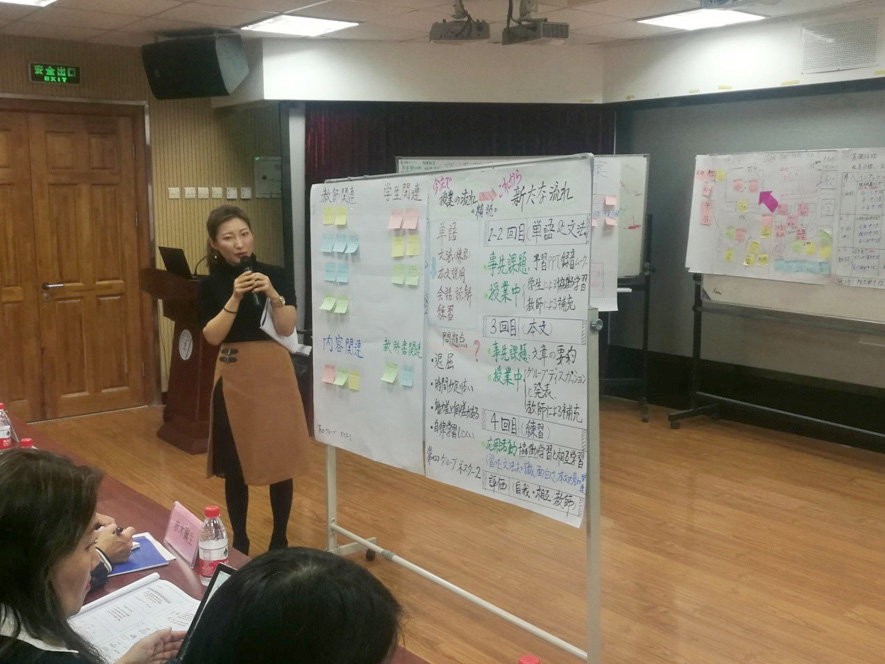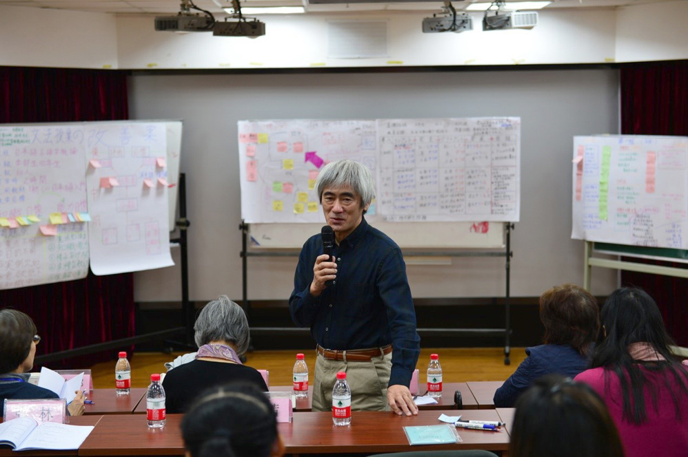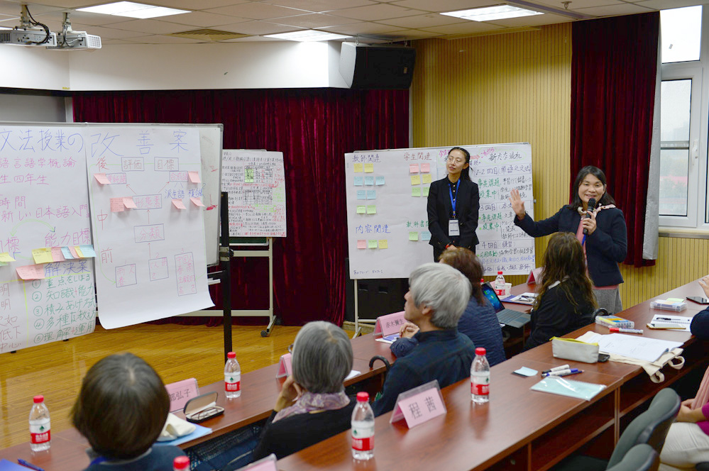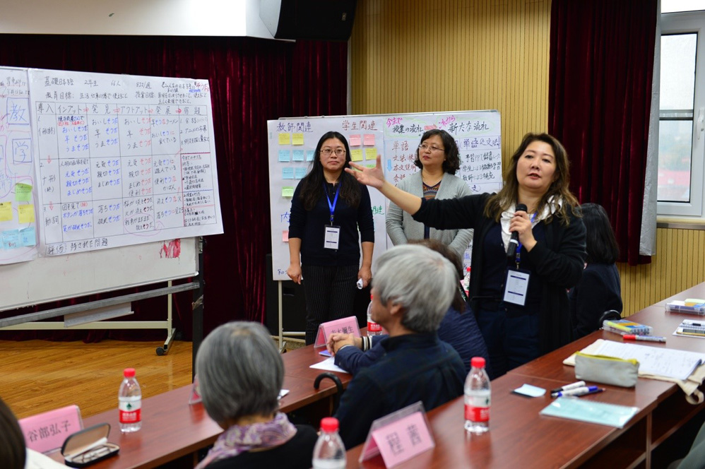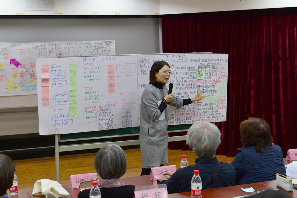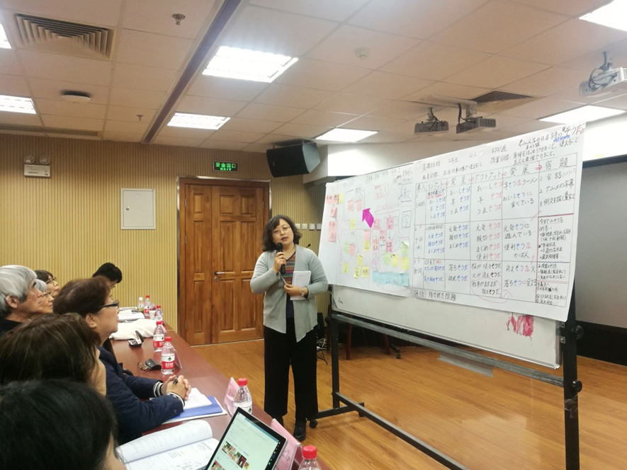 在工作坊的过程中,东京学艺大学教授、北京师范大学客座教授谷部弘子老师,东亚大学的教授赤木弥生和家根桥伸子老师、早稻田大学的基調演説から学んだこと:「教」和「学」