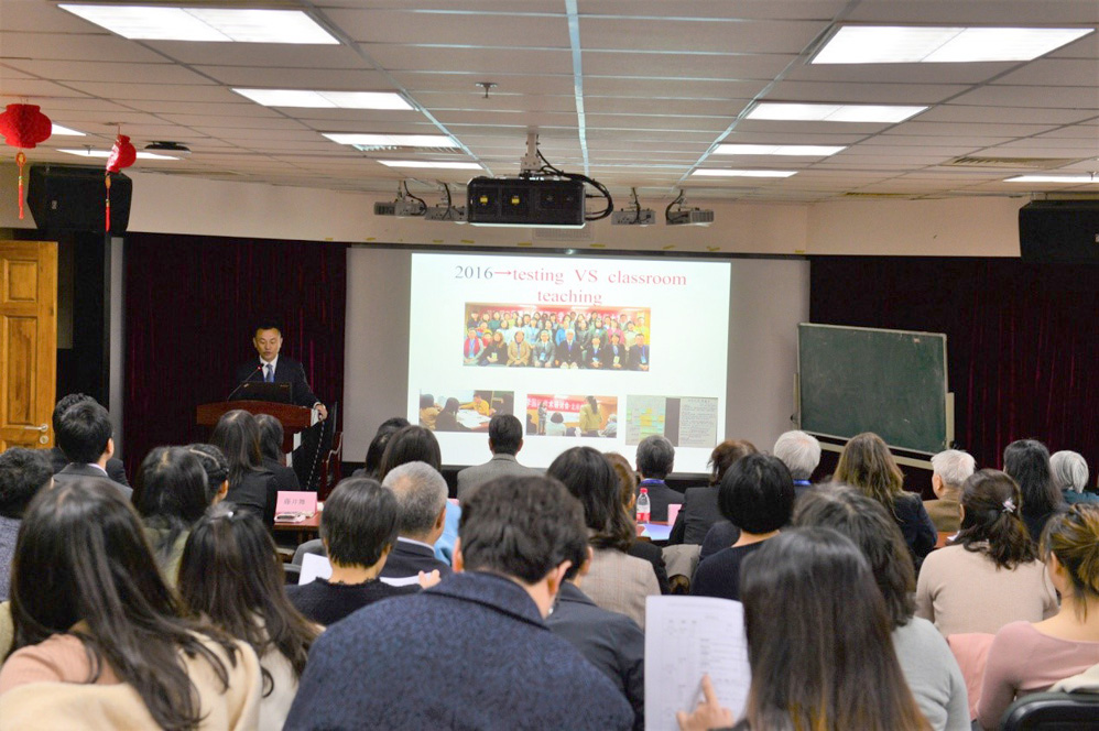 北京师范大学外文学院日语教育教学研究所所长林洪首先向与会的学者、教师简短地介绍了本次研讨会和工作坊的主旨。他说:为了更好地展开思考与讨论,大会从两个角度给出了议题: