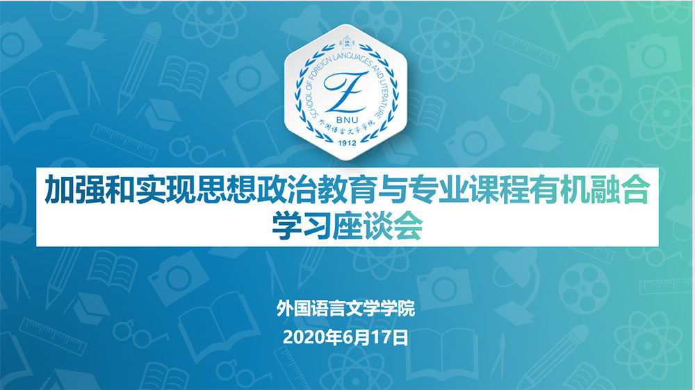 为贯彻学校教育教学大讨论会议精神,结合学院专业特点,切实加强课程思政建设,6月17日下午,外文学院举办加强和实现思想政治教育与专业课程有机融合学习座谈会。本次会议在线举办,学院党政联席会成员、党委委员、理论学习中心组成员、教工党支部书记、教学委员会成员、师德师风监督委员会成员和各系主任参加了会议,会议由学院党委书记刘娟主持。
