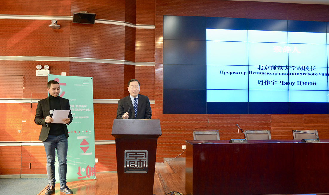 周作宇校长在开幕辞中对“俄罗斯学”研究生国际学术论坛的举办表示了高度的赞赏,指出由北京师范大学俄罗斯研究中心举办的“俄罗斯学”研究生论坛已经成为北师大对俄交流的品牌论坛之一,在推动中俄人文合作与交流中发挥着重要的作用。周校长指出,两国青年一代应加强交流,互鉴共进,齐心协力,努力参与不同文明交流对话,为构建人类命运共同体贡献青春、智慧和力量。