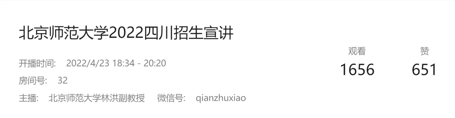 4月23日晚,林洪老师在线上进行了第一次北师大在四川招生政策及录取数据分析,效果不错。4月至7月,四川高招的后续工作将陆续开展:招生宣讲、线上QQ群答疑、电话回访意向考生、参加教务部高招岗前培训、赴四川下校宣传等等系列工作。学院继续以“传帮带”的方式,吸纳新老师,将有50名老师参与支持高招宣传工作。