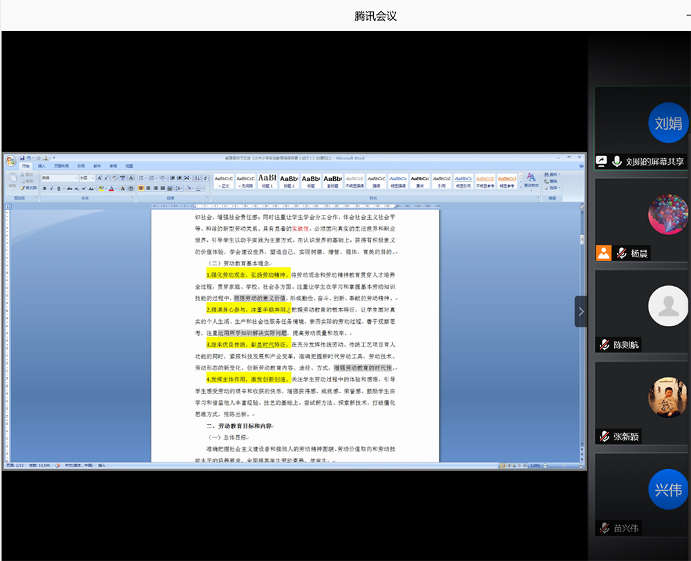 为深刻领会劳动教育在新时代高等教育中的重要意义,深入贯彻执行“纲要”精神。7月17日上午,外文学院党委理论学习中心组在线开展集体学习。会议由党委书记刘娟主持。
