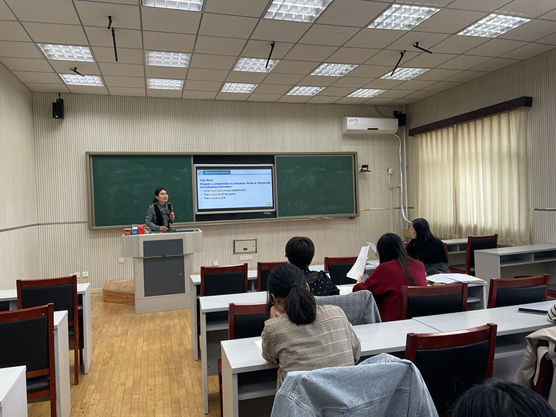 首先进行说课的是来自高一年级的孟庆珍老师,她说课的内容是北师大新版高中教材必修三Unit 8 Lesson 1 Roots and Shoots。在本堂课中,孟老师首先由三幅生活中的图片来引入话题,通过学习理解、应用实践、迁移创新等一系列层层递进的活动,帮助学生们获取并梳理文中有关“Just-me-ism”的含义、表现及危害以及文中有关“根与芽”环保组织的基本信息,并在课堂最后使学生们能够口头介绍“根与芽”环保组织。