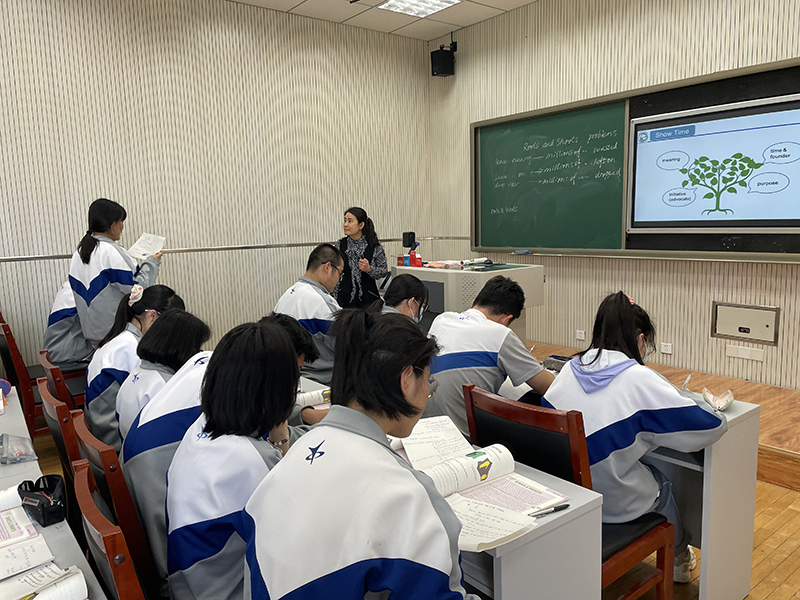 随后,两位老师针对上次的说课指导,面向全校高一高二英语备课组进行了反思性说课。两位老师简单的回顾了说课中专家指出自己存在的问题,分享了自己的理解,阐述了自己是如何对教学设计进行了调整,并梳理了本次试讲课的设计思路,也向专家提出了自己在此阶段遇到的问题和疑问。