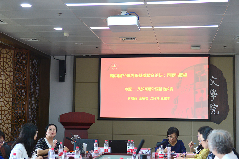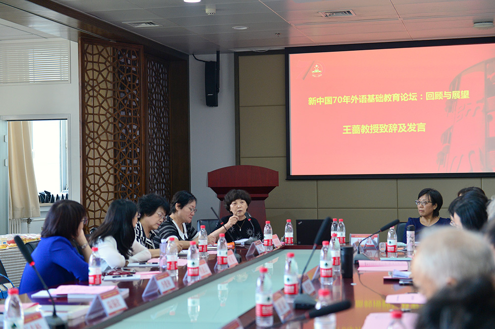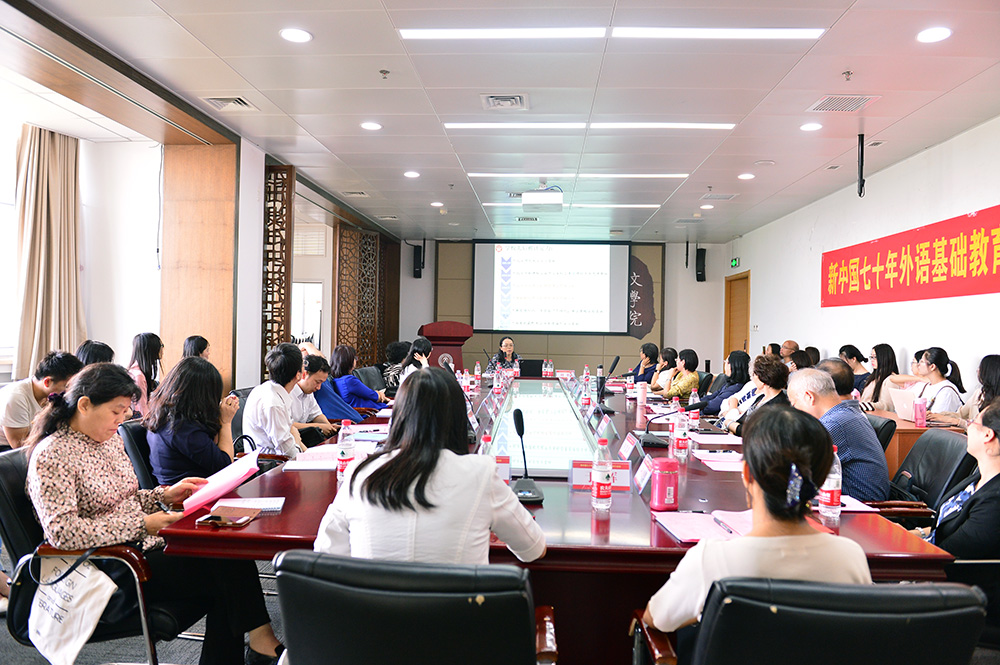 2019年9月21日,由自慰直播-美女自慰直播 主办的新中国70年外语基础教育论坛:回顾与展望在京举行。为庆祝中华人民共和国成立70周年,自慰直播-美女自慰直播 特邀请外语基础教育领域专家学者,共同回顾新中国外语基础教育发展70年的光辉历程,总结外语基础教育的成功经验,不忘初心,牢记使命,共同展望中国外语基础教育的未来发展方向。本次论坛由自慰直播-美女自慰直播 副院长陈则航教授和于晖教授主持,自慰直播-美女自慰直播 党委书记刘娟教授及来自自慰直播-美女自慰直播 、北京外国语大学、首都师范大学、北京师范大学出版、人民教育出版社、北京市教育科学研究院基础教育教学研究中心、北京市第四中学、北京市月坛中学、中国人民大学附属中学、清华大学附属中学、北京市第十二中学的三十余位专家学者出席论坛。本次论坛是自慰直播 党委“不忘初心、牢记使命”主题教育系列活动之一。