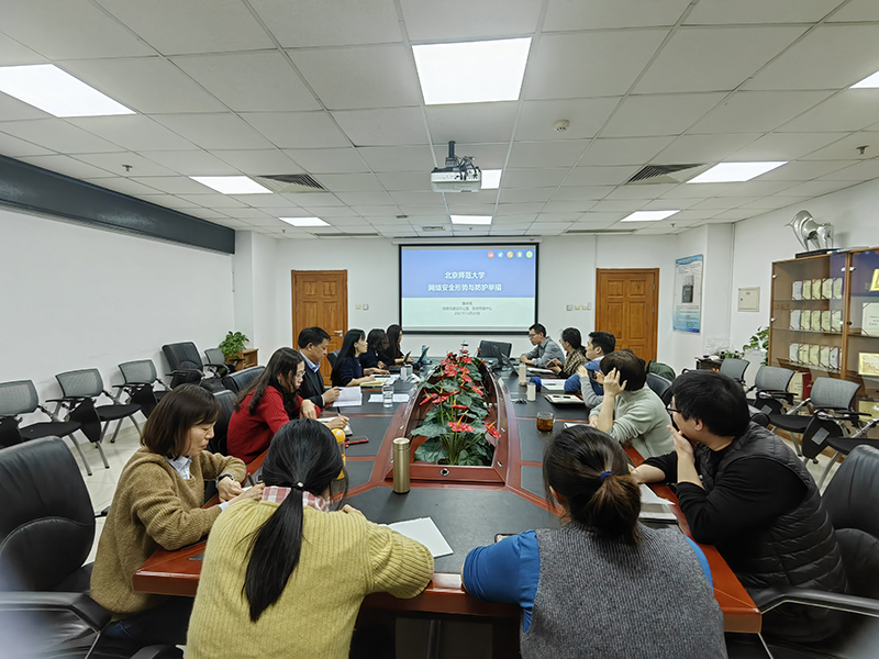 专题学习会首先请信息化建设办公室、信息网络中心鲁学亮老师做题为“北京师范大学网络安全形势与防护举措”的讲座。鲁学亮老师从国家网络安全要求、教育行业网络安全事件、学校网络安全形势、学校网络安全防护措施等四个方面全面介绍了网络信息安全的现状、问题与防护举措,用真实的事例、详实的数据为老师们上了一堂生动的网络安全教育课。随后,学习进入交流环节,与会老师就在工作中的信息网络安全困惑和问题与主讲人进行深度交流,鲁学亮老师做出了详细的指导与解答。