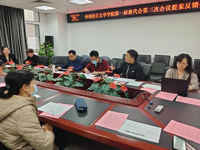 2020年11月16日下午,外文学院工会成功举办了外文学院第一届教代会第三次会议提案反馈会,讨论和研判提案立案和评议最佳提案等相关工作。与会人员有提案人、教代会代表、执委全体委员、提案委委员和各系部主要负责人。