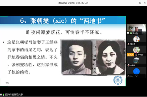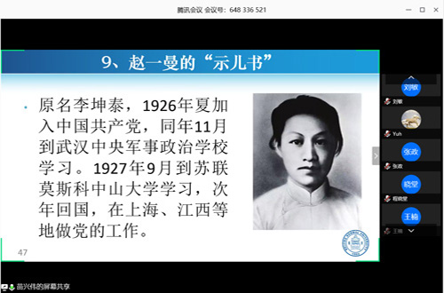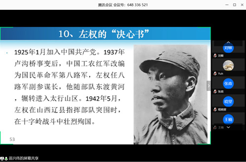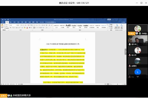 2020年3月27日下午三点半,自慰直播 英文系党支部召开了云会议。会议由英文系党支部书记孙晓慧老师主持,通过腾讯会议平台,采取屏幕分享和发言讨论的方式进行,共有十六位党员同志参加了此次云会议。会议首先邀请苗兴伟院长给大家上党课,讲述“十一书”的故事,包括贺页朵的“宣誓书”、傅烈的“绝命书”,寻淮洲的“请战书”,王尔琢的“托孤书”,卢德铭的“行军书”,张朝燮的“两地书”,陈毅安的“无字书”,夏明翰的“就义书”,赵一曼的“示儿书”,左权的“决心书”,陈然的“明志书”。苗老师的党课图文并茂,声情并举,参会同志表示党课学习使我们感受到了革命烈士浴血奋战,拼搏奋发,以革命事业为首任的伟大使命感。随后,孙晓慧书记带领大家学习了习近平总书记在湖北省考察新冠肺炎疫情防控工作时的重要讲话精神。支部党员同志纷纷表示在当前局势下将以抗击疫情和教学科研工作并重,一起努力度过困难时期。此外,孙晓慧书记向大家汇报了英文系党支部本学期的主要支部工作计划,详细讲解了每个月份主要的支部活动计划。