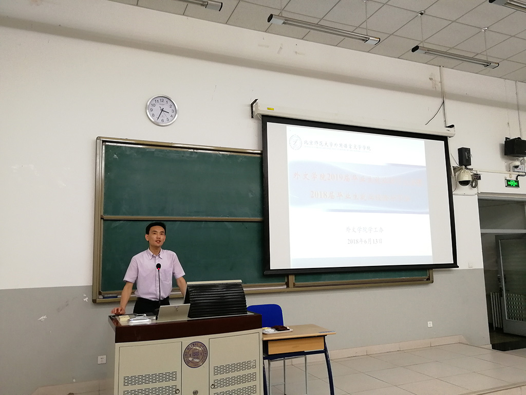 为增强2019届毕业生求职就业意识,引导毕业生树立科学就业观念,准确把握就业形势和就业政策,6月13日下午,外文学院学工办组织召开2019届毕业生就业动员大会暨2018届毕业生就业经验分享会。2019届非师范生、研究生参加了会议。
