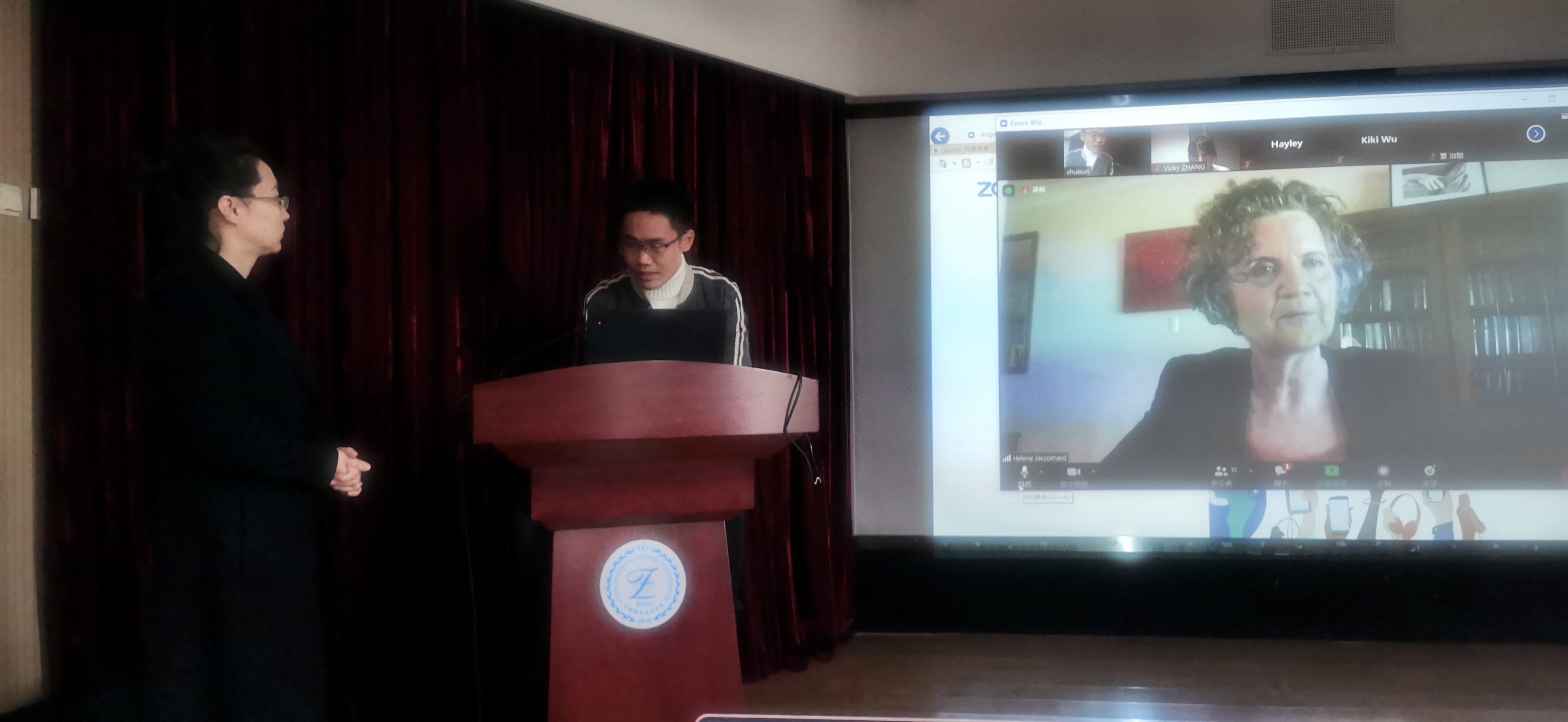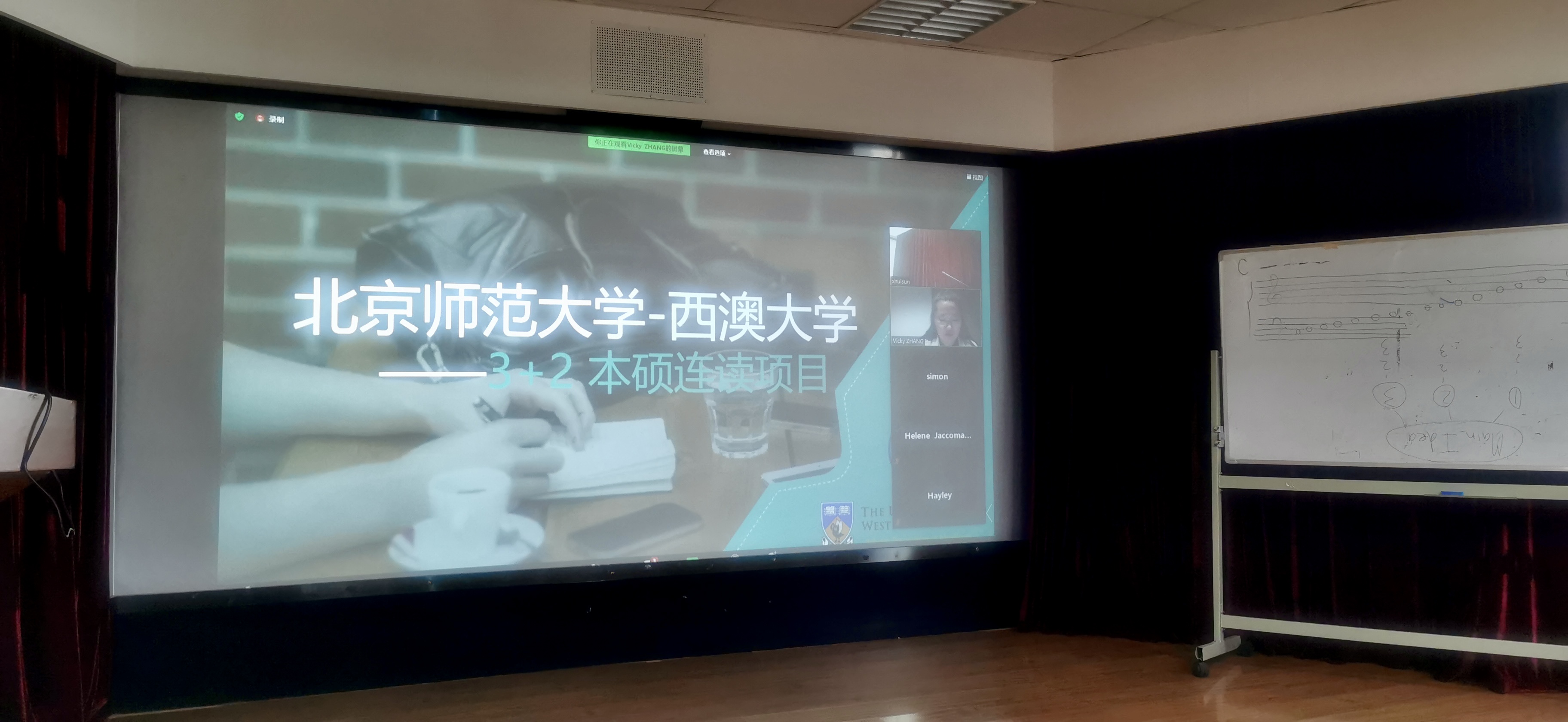 2020年11月5日上午,北京师范大学与西澳大学3+2本硕连读项目线上招生宣讲会在后主楼914召开。来自西澳大学的Hélène Jaccomard教授、北师大与西澳大学项目负责人张金巍老师以及澳洲国际移民教育张生权董事长为同学们就合作项目进行了详细介绍。英文系副主任孙晓慧老师和英文系部分本科生参加了此次线上招生宣讲会。