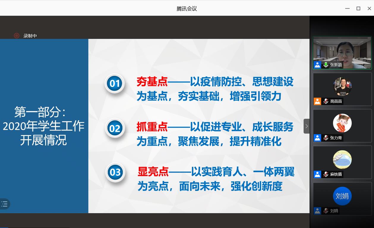 2021年1月14日,自慰直播 通过腾讯会议线上召开了2020年度学院工作总结大会,学院90余名教职工参加了会议。会议由学院党委书记刘娟主持。