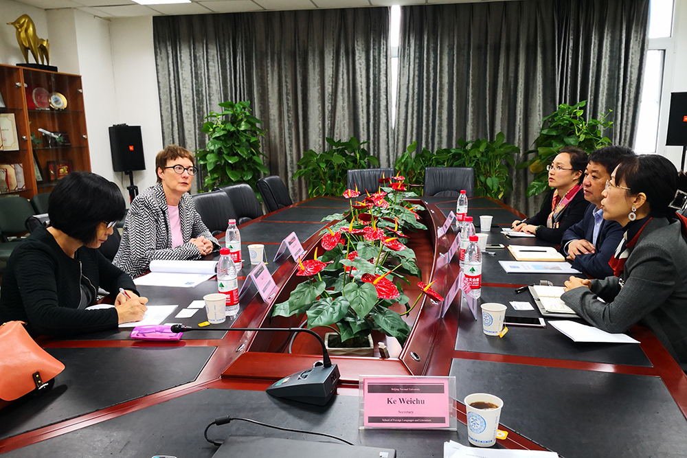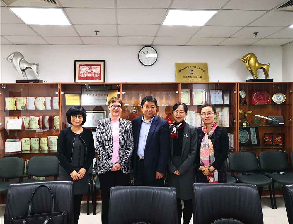 2019年10月17日上午11点,奥克兰大学研究生院院长Caroline Daley副教授和国际处解力老师应外文学院邀请,前来洽谈关于外文学院与奥克兰大学签署双学位项目的有关事项。会议在后主楼1020会议室举行,外文学院院长苗兴伟、副院长于晖、英文系副主任孙晓慧出席了此次会议。
