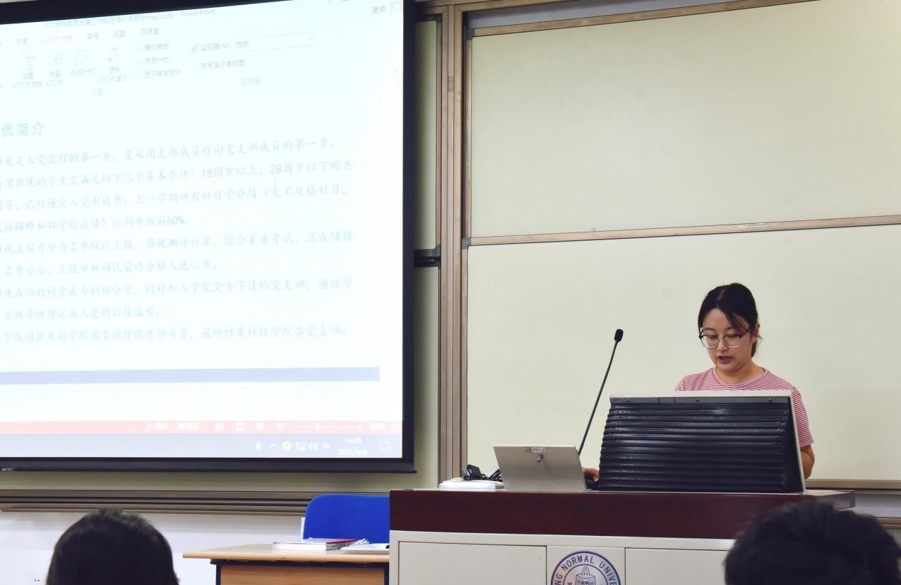 接下来,本科生第二党支部书记段宇宣同学对团推优的流程进行了详细介绍,明确了团推优的条件及流程,并对相关综合素质考试进行了例题展示,让大家提前了解考试题型,尽早做好考试准备。