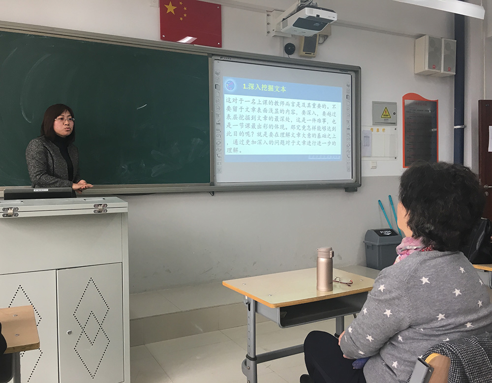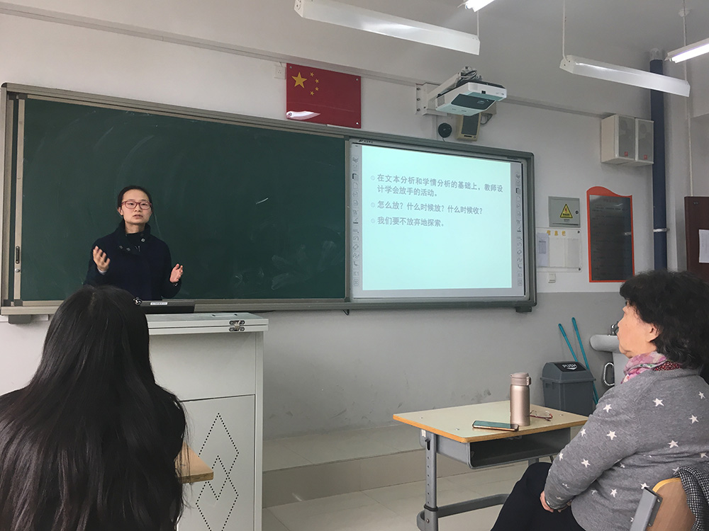 首先,朝阳外国语学校许璐老师结合具体的教学内容做改进教师汇报,在一开始的教学设计中,她过分关注作者的情感态度,没有关注到文本本身,在试讲后的磨课过程中,逐渐意识到问题所在,并逐步放手,使学生对文本内容内化,深刻理解文本主题意义。随后,北京工业大学附属中学关欣老师、东方德才黄莹老师、80中王静老师也分别介绍了自己参与教学改进的收获和感受,王静老师指出,在改进后的课堂中,英语基础薄弱的学生热情被点燃,课堂参与和测试成绩都有了更好的表现。
