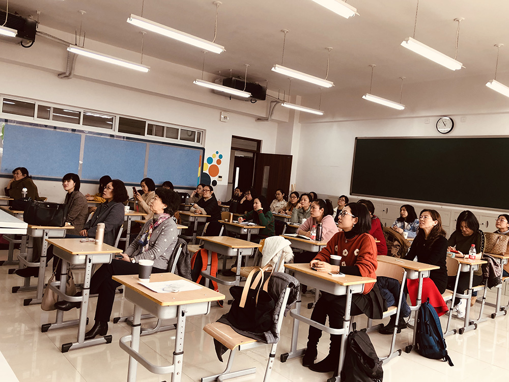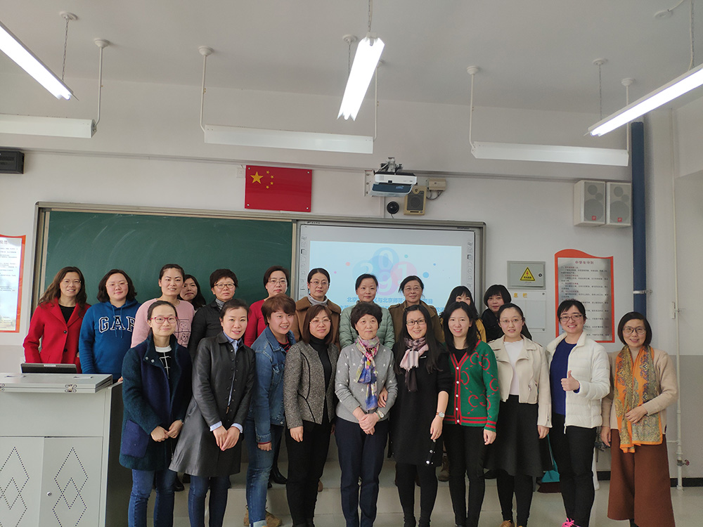 主会场结束后,英语学科分会场在A区303教室开展,由教研员李春芳老师主持。出席会议的有北京师范大学外文学院王蔷教授、潘琳副教授、葛晓培老师,和朝阳区英语教师代表们。