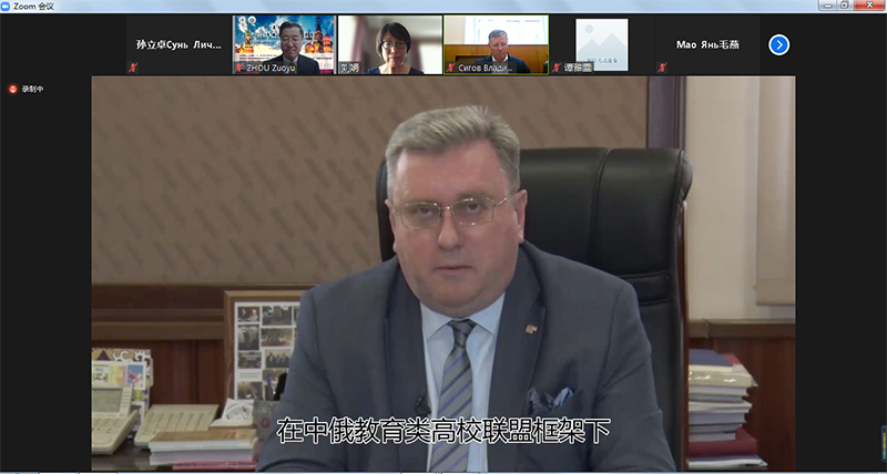 莫斯科国立师范大学校长卢博科夫在视频问候中对莫师大和北师大的合作水平,以及两校在中俄教育类高校联盟框架内组织的共同工作予以了高度评价,并对两校未来的合作提出希冀。他指出,中俄互学语言的热潮就是两国友好关系的有力证明。