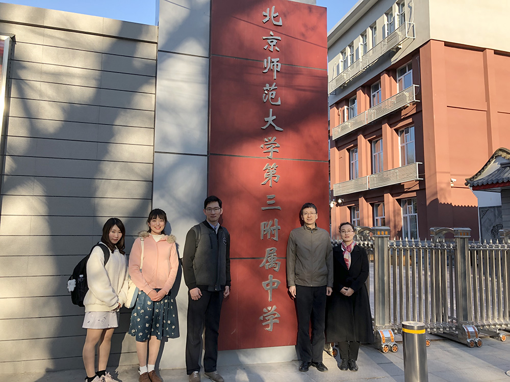 2019年3月22日上午,北京师范大学亚洲校园项目留学生关美凛(日本)、永井夏芽(日本)、吴寿容(韩国)随同北师大外文学院王志松教授和孙晓慧副教授来到北师大第三附属中学参加本学期初高中第一次试讲活动。参加本次活动的还有三附中高中英语教研组长王净老师、初中英语教研组长曹美玲老师、以及多位英语教师和北师大访学老师。