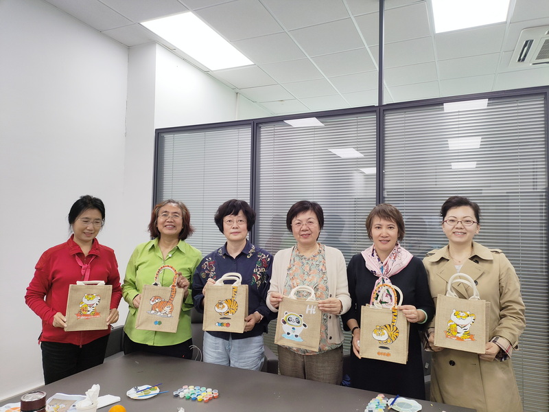 为庆祝第112个“三八”国际劳动妇女节,丰富自慰直播 女教职工的精神生活,2022年3月7日下午2点至4点,外文学院工会在后主楼1018举办了“阳春三月女神节,心灵手巧外文人”手绘包活动。