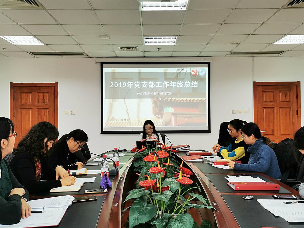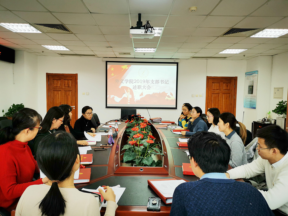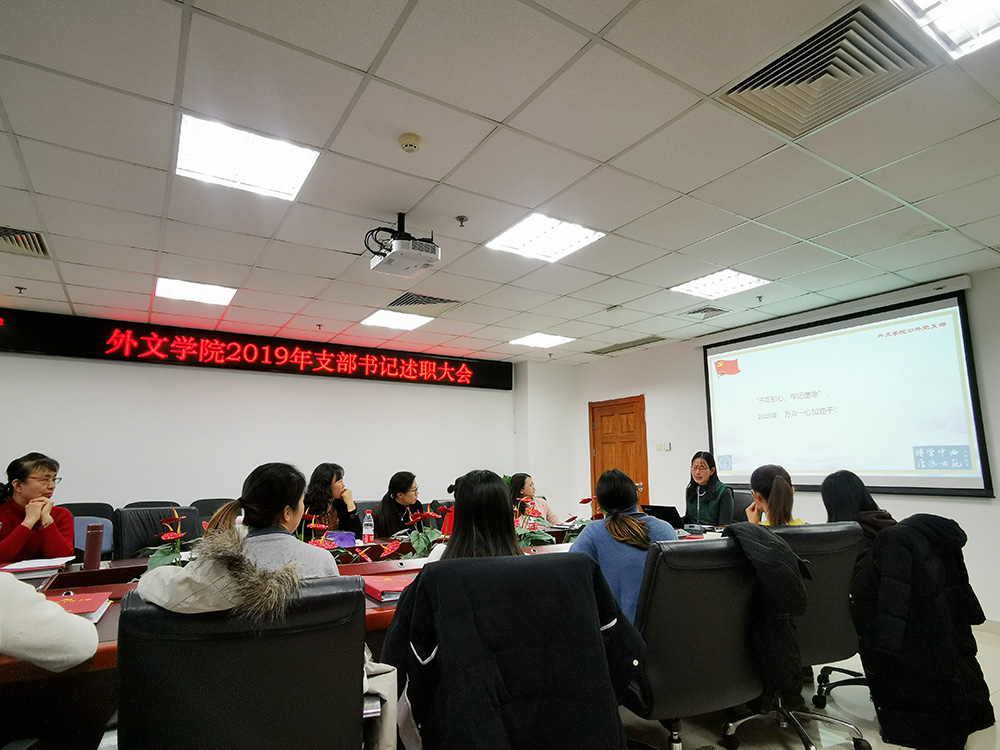 为深入贯彻落实党的十九大精神和习近平总书记关于落实党建工作责任制重要精神,外文学院党委于2020年1月2日下午15:30在后主楼1020会议室召开支部书记述职大会,校党委组织员李多老师、学院师生党支部书记参加本次会议,会议由学院党委副书记张新颖主持。
