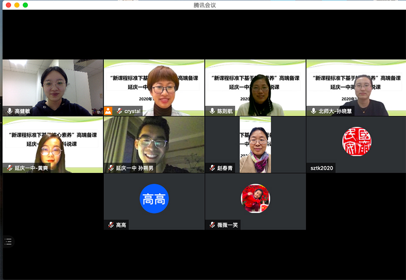 北师大与延庆一中“新课程标准下基于核心素养的高端备课”项目开展第一次说课指导活动2020-11-122020年11月6日16点,北京师范大学与延庆一中合作的“新课程标准下基于核心素养的高端备课”项目开展本学期第一次专家指导说课活动。 -