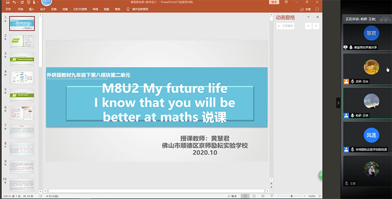 京师励耘实验学校“学科能力教学改进项目”专家指导集体说课活动2020-11-042020年10月31日14:00,北京师范大学外语教育与教师教育研究所王蔷教授和钱小芳副教授,为广东佛山京师励耘实验学校的黄慧君老师和陈凤莲老师单独开展“腾讯会议”线上说课指导活动。 -