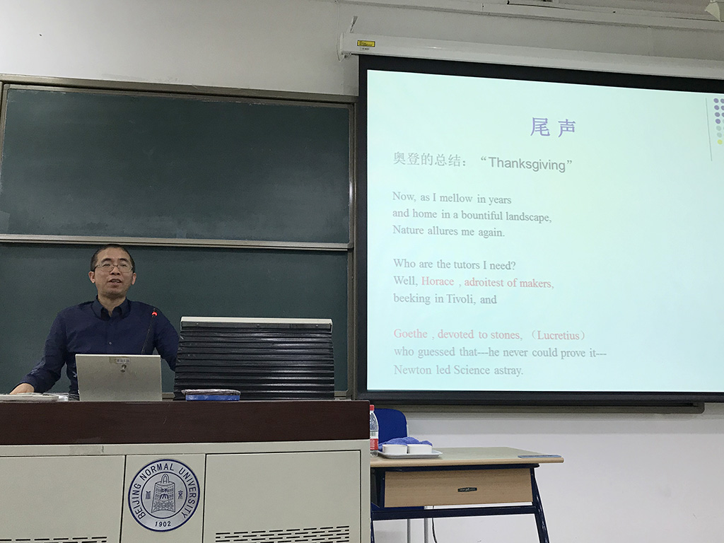 外国文学研究所文学系列 (60-61)讲座圆满结束2018-10-102018年9月21日下午3点半,受外文学院外国文学研究所所长蒋虹教授邀请,第七届鲁迅文学奖文学翻译奖得主、重庆大学外国语学院李永毅教授,为北京师范大学师生做了题为“英美现代主义的古罗马革命”的讲座。 -