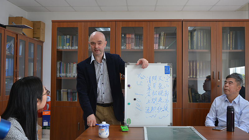 俄罗斯学系列讲座“中国古典诗歌俄译的理论与实践”成功举办2018-04-264月20日上午,由教育部区域与国别研究基地北京师范大学俄罗斯研究中心主办的俄罗斯学系列讲座“中国古典诗歌俄译的理论和实践”顺利举行。讲座由俄罗斯研究中心张冰教授主持,圣彼得堡大学东方学院汉语系主任А. Г. Сторожук教授主讲。 -